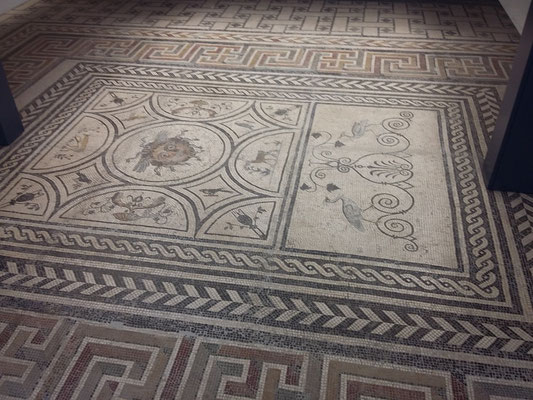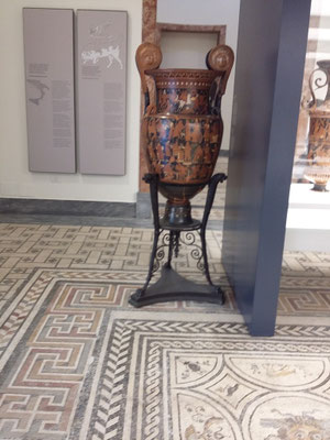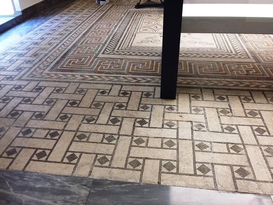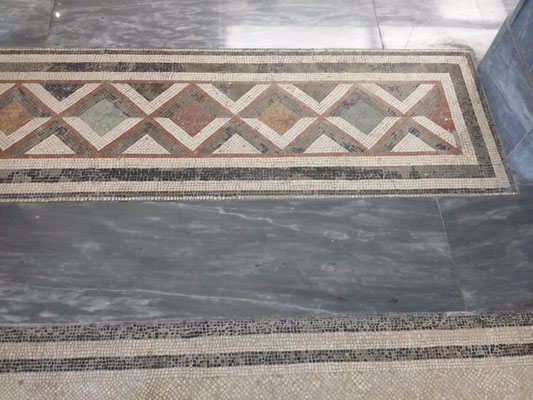 Sul piano adibito all'esposizione di reperti provenienti dalla Magna Graecia sono stati ricostruite le originarie pavimentazioni costituite da minuscole tessere di mosaico. Per la delicatezza della pavimentazione, viene tassativamente richiesto ai visitatori di indossare delle soprascarpe.