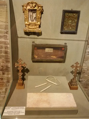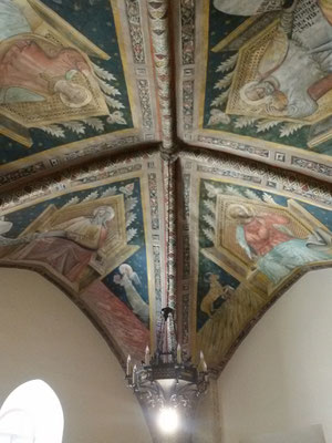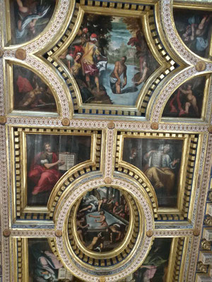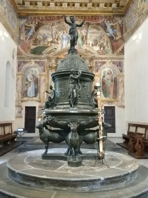 Il Battistero di Osimo, nella Chiesa accanto alla cattedrale, appare come un edificio indipendente e vanta una bellissima fonte battesimale ed uno spettacolare soffitto a cassettoni, ricco di teste di cherubini, fogliami ed arabeschi, oltre a cornicioni, rosoni e dentelli, che rappresentano scene bibliche tratteggiate con grande abilità esecutiva.