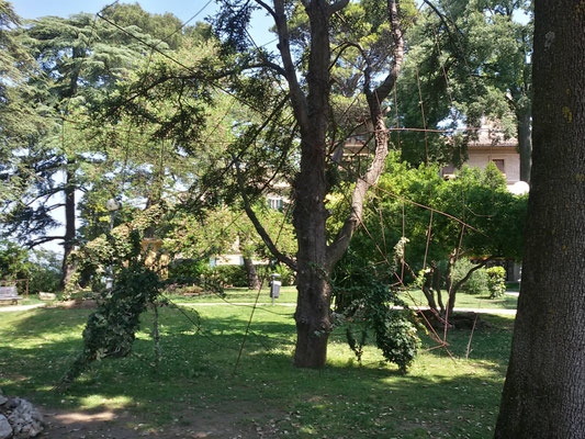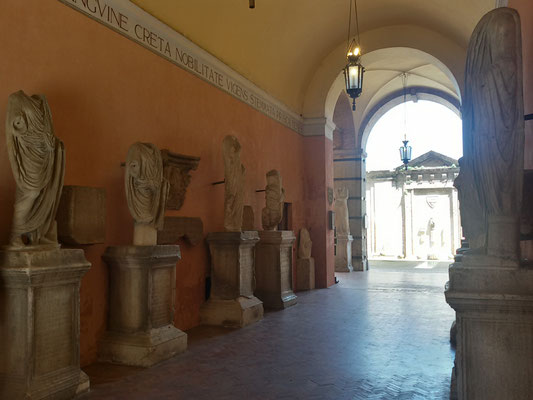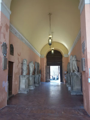 Nell'atrio è possibile ammirare Lapidarium, con statue, epigrafi, bassorilievi di epoca romana e sculture acefale. All'interno dell'atrio sono conservati anche pezzi d'artiglieria, tra cui una bombarda quattrocentesca, varie palle in pietra ed un carro militare della prima guerra mondiale.