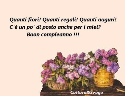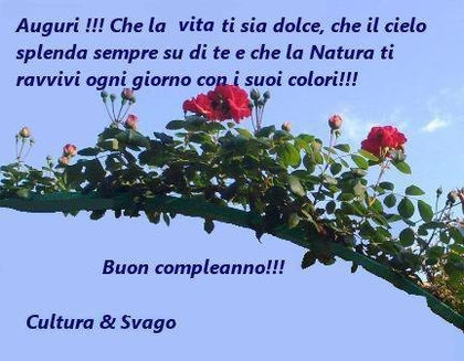 Mille auguri di bellezza, di gioia, di poesia e di pace!!! Tanta felicità, serenità, salute, brio e ... che la vita ti sorrida sempre!!!